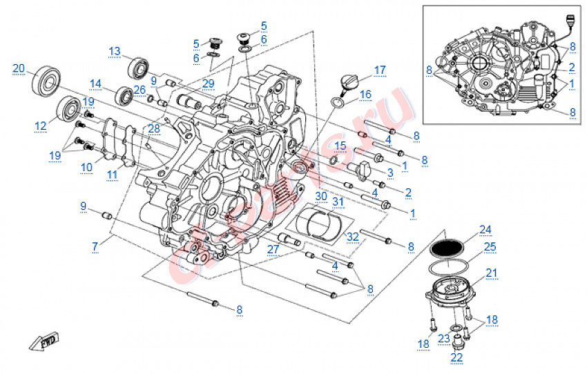 картер, левая половина (в сборе с вкладышами) |